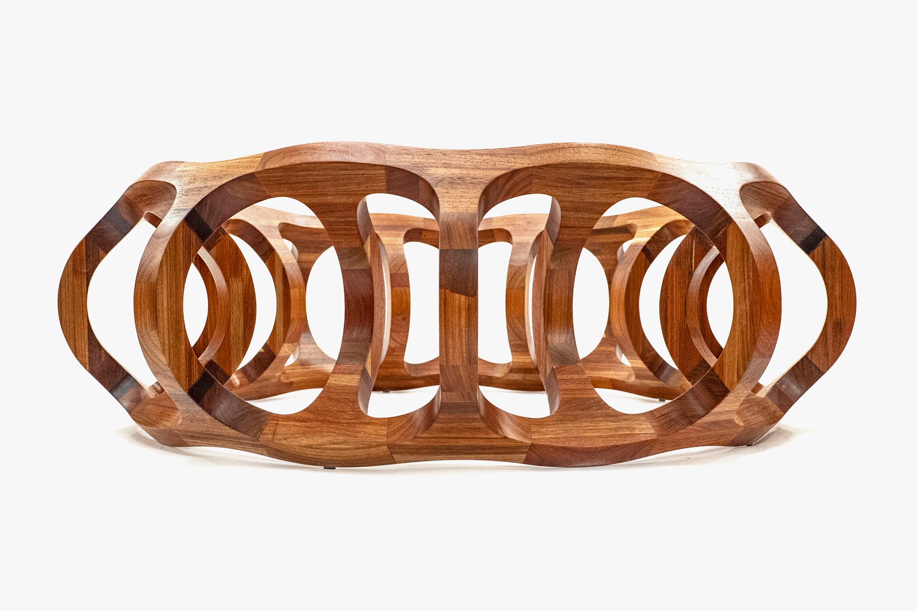 Born from the desire to create a toroidal figure using minimal solid wood modules, resulting in a design masterpiece that merges science and craftsmanship.
