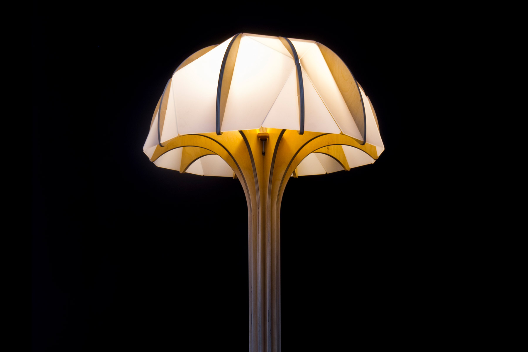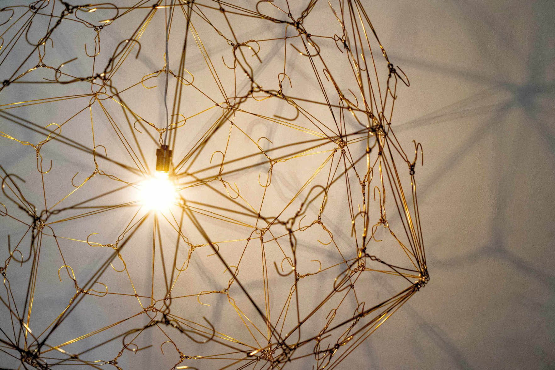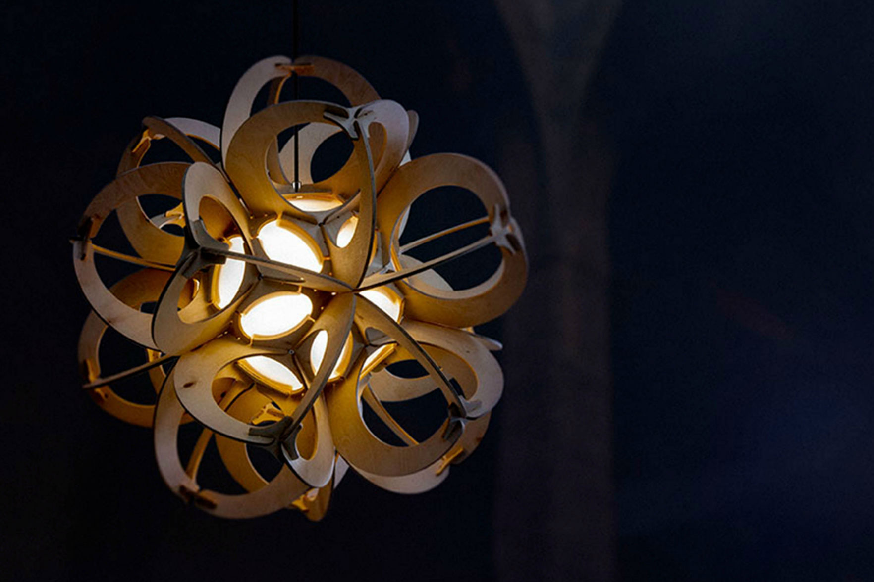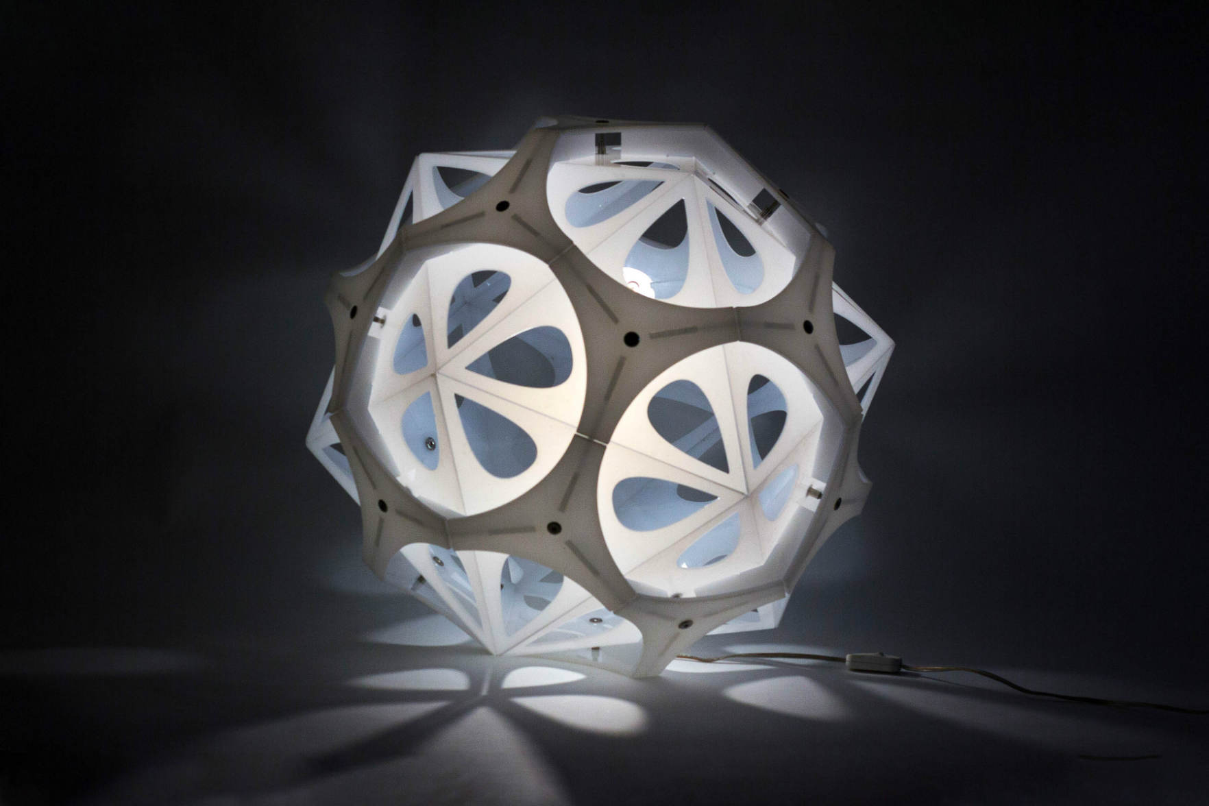 This Martian inspired pendant lamp is constructed solely of acrylic pieces. Its complexity pushes the boundaries of a typical spherical pendant light.
