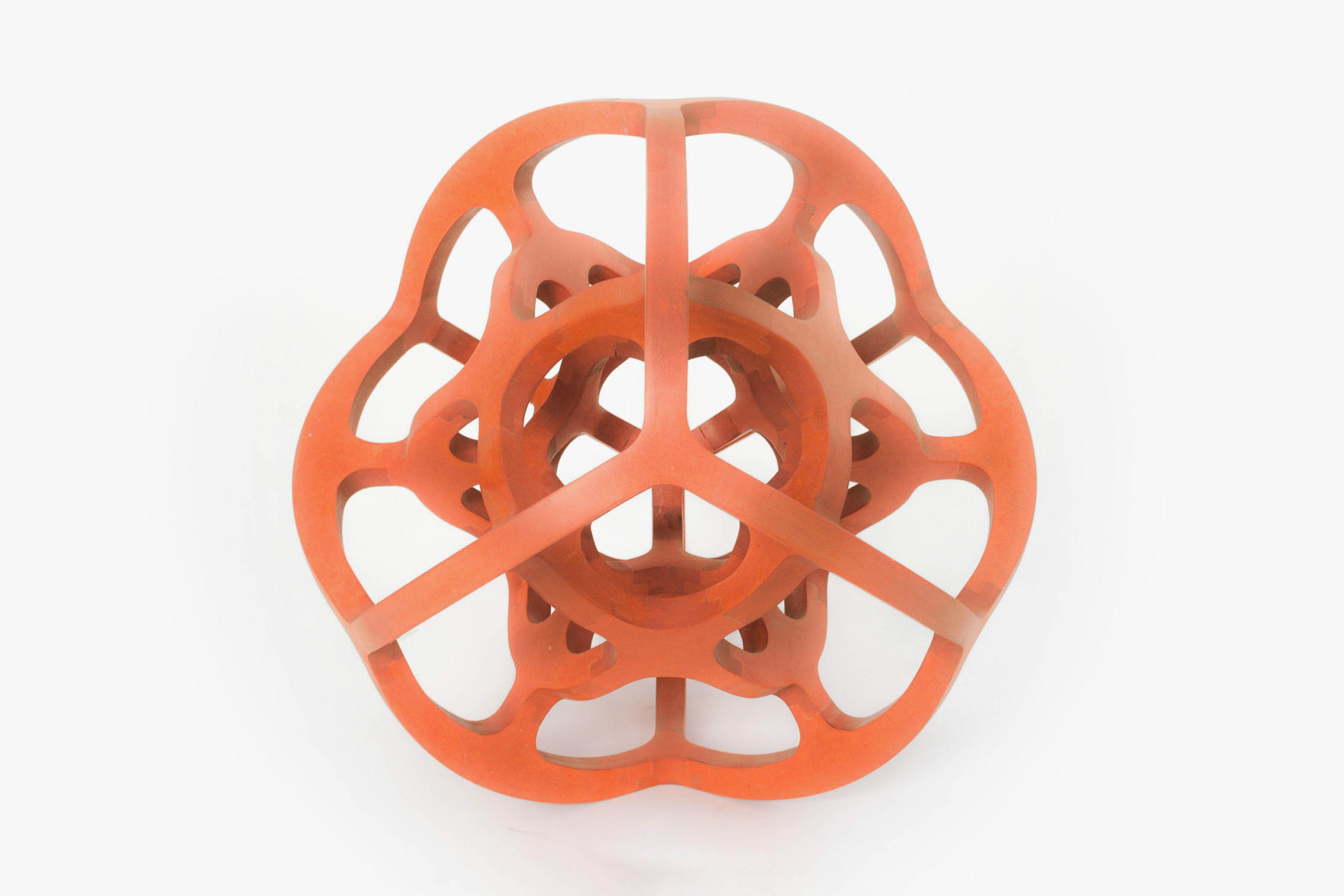 Polen combines the structural features of wood with the brightness of colors. This piece shows the dual relation between the dodecahedron and the icosahedron.