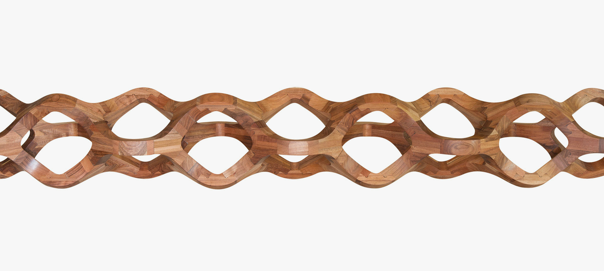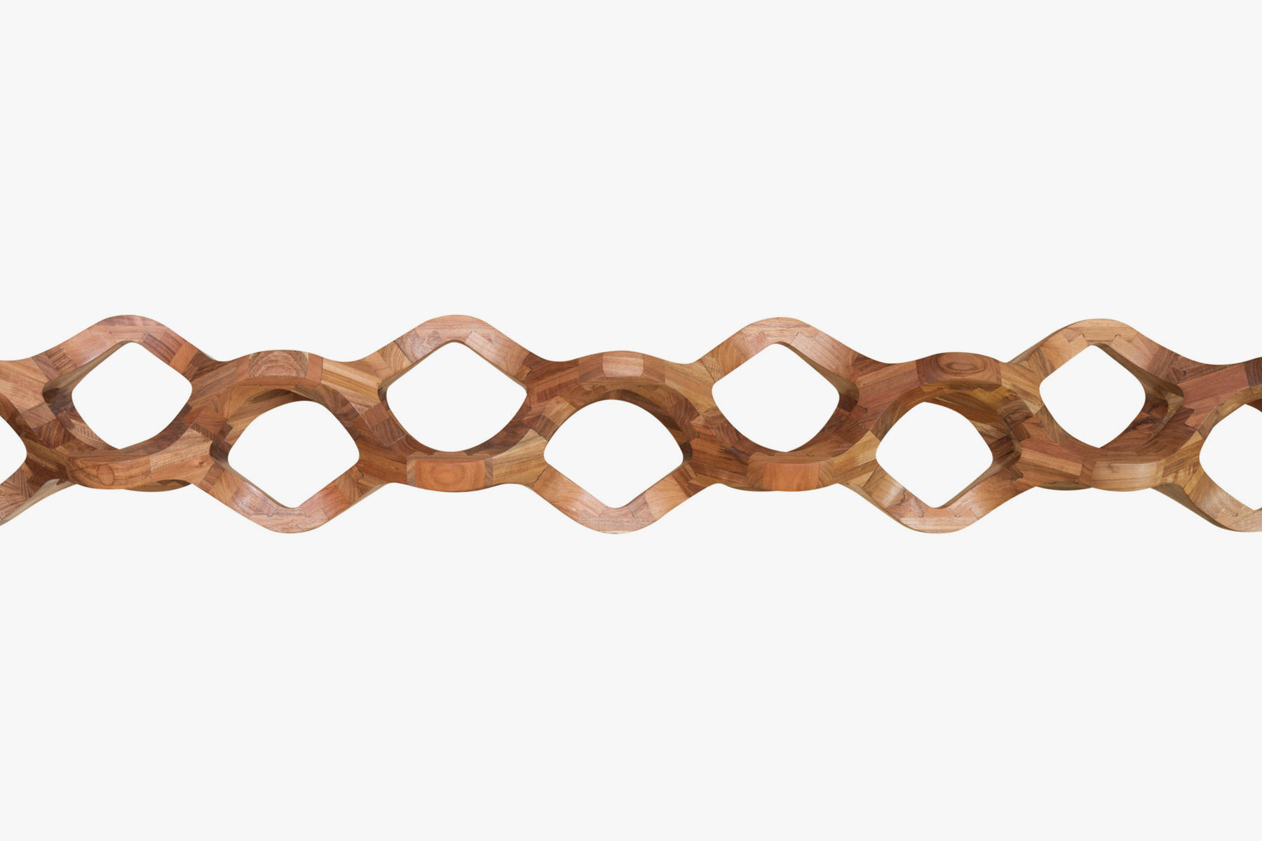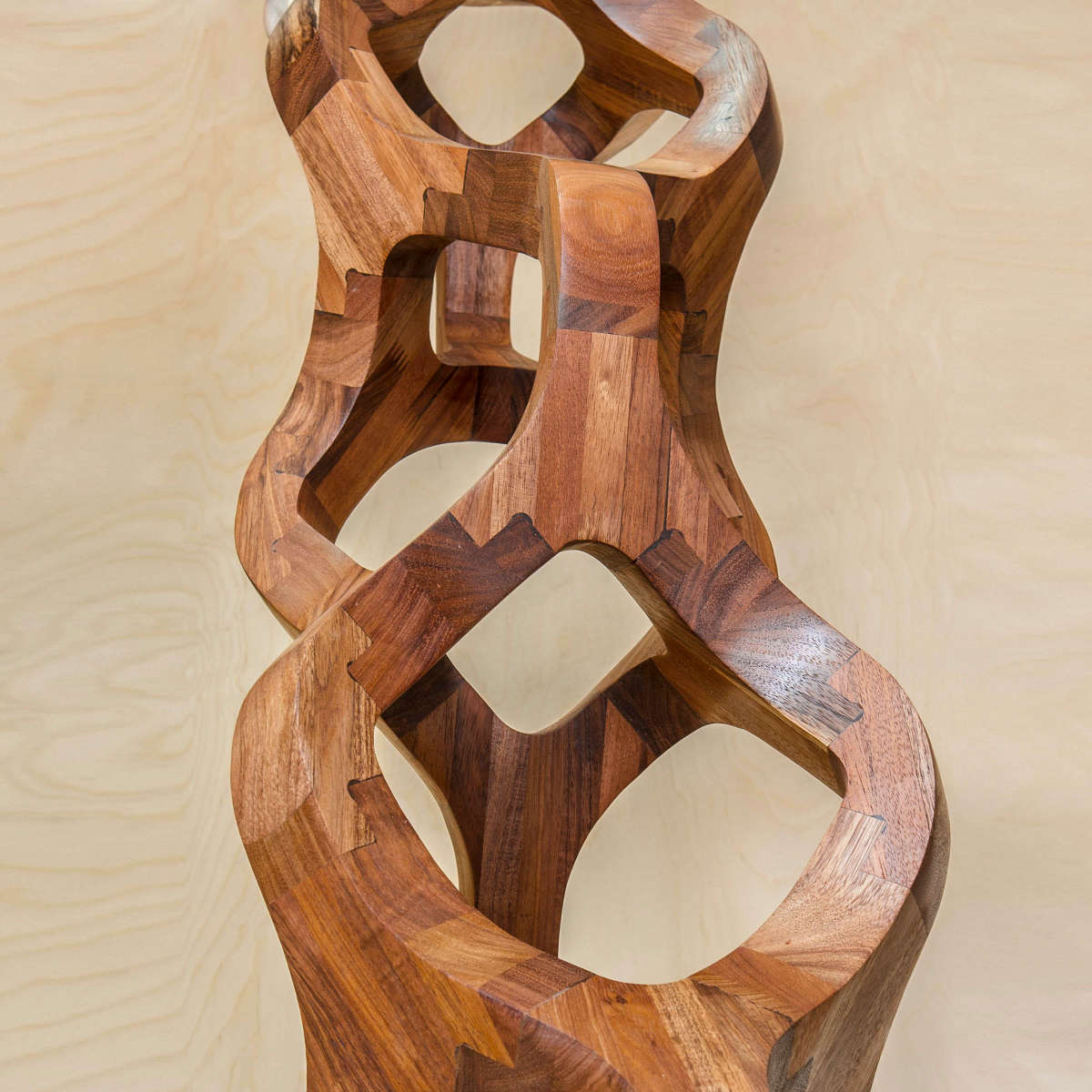 Alexandria functions as an accent of sophistication and elegance as its geometry imbues the piece with solidity while it emanates quietness to whichever space it is placed into. Alexandria has a highly polished surface, celebrating the age-old tradition of craftsmanship, and is constructed in Mexican tzalam wood due to its intrinsic flexibility it has an oiled finish that brings the materiality of tzalam wood to the fore adding to the piece its magnificent array of natural different tonalities.