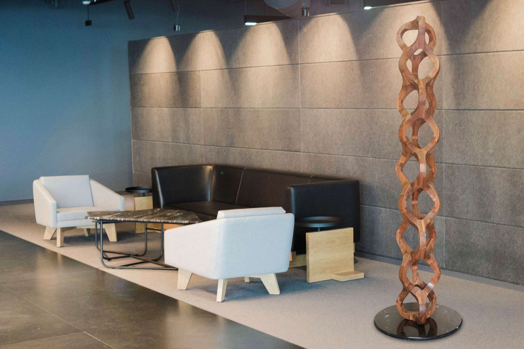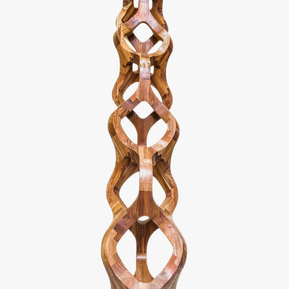 Inspired by Alexandria’s Lighthouse, one of the Seven Wonders of the Ancient world, Pedro Cerisola designed this vertical piece, carrying forward the research process and delivering a unique system of connection between the pieces that conform the tower.