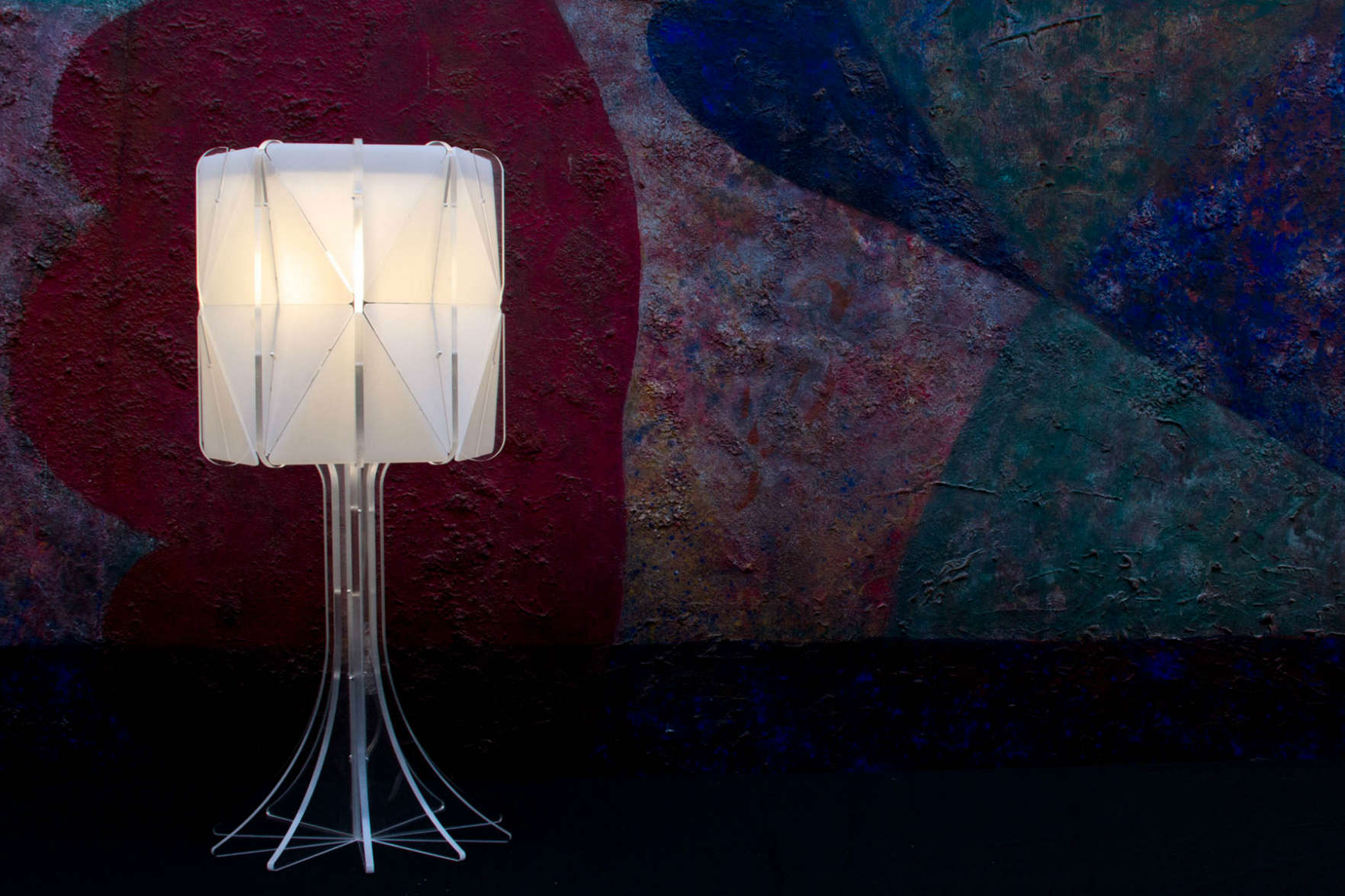 The design of this lamp collection arises from the idea of building screens with flat pieces cut in a translucent and rigid material such as acrylic or Corian, thus covering the light source from all angles and generating a diffuse lighting much more appropriate for creating an atmosphere in any space. To achieve this, Pedro Cerisola applied the symmetry of Platonic and Archimedean solids around a center, in this case a focus or source of light.