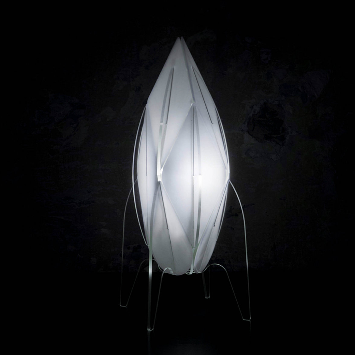 Based on the geometry of the dodecahedron, a Platonic solid formed on the basis of regular pentagons, Aurora is a table lamp that produces a covert light with a moderate brightness.