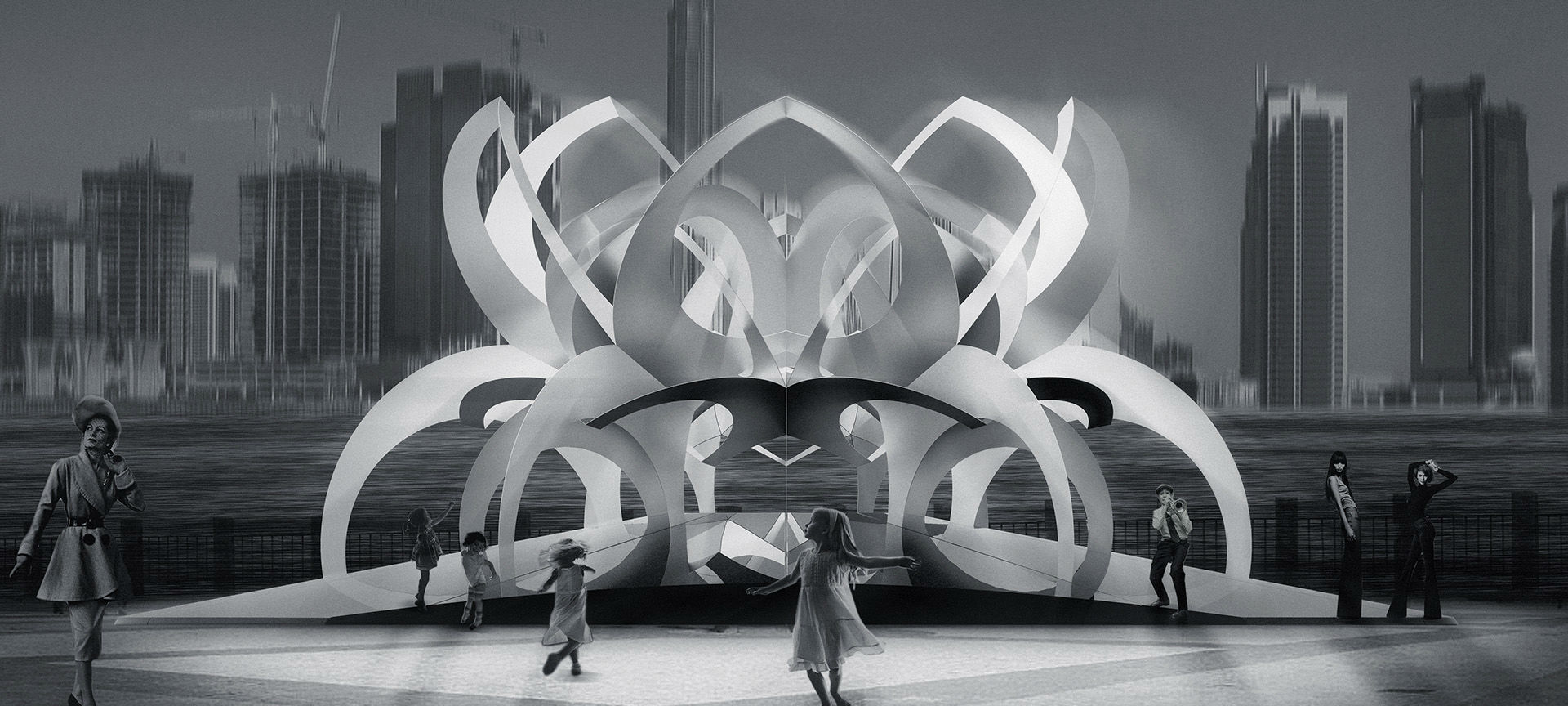 This elaborated artwork sums up years of research in geometry, interactive design, user experience and playfulness. This piece could become an emblema for a new area in development, or a neighborhood looking to renovate itself by adding an outstanding artwork to the nearby residents.