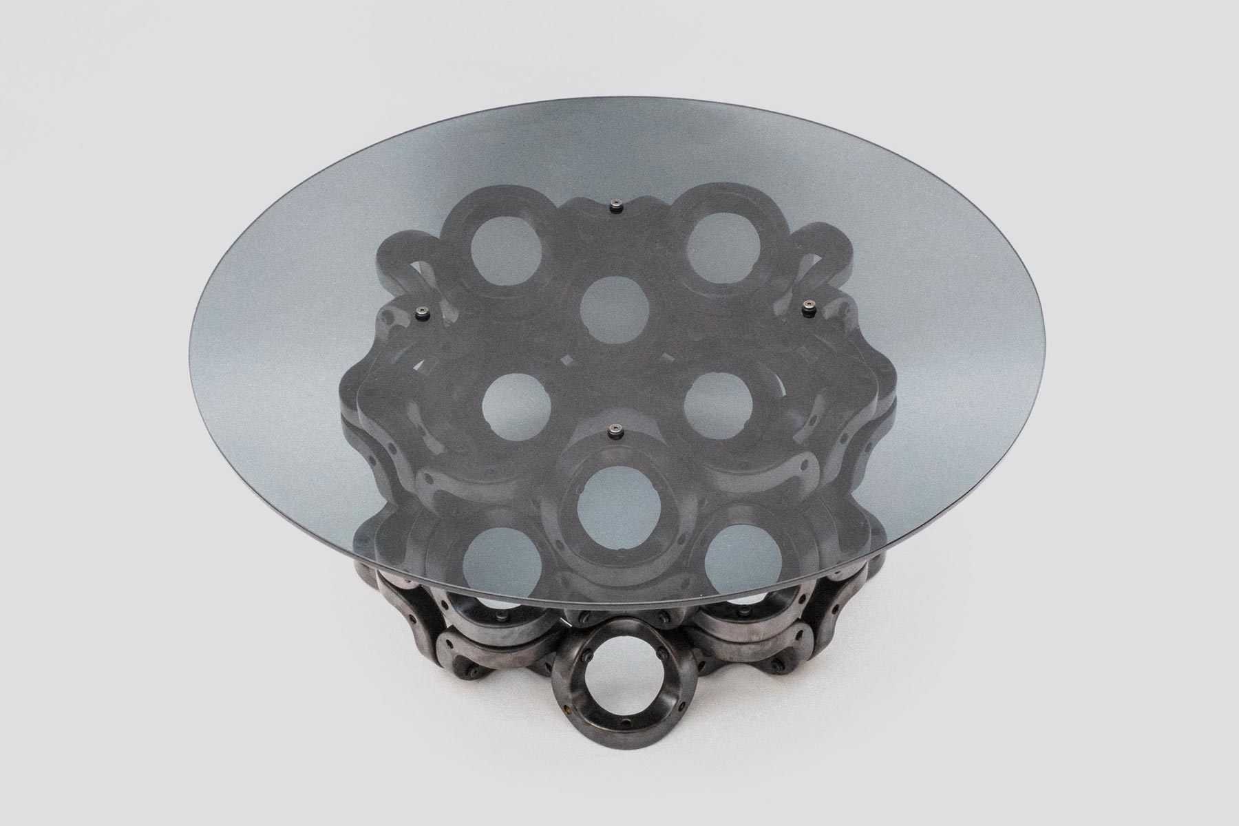 Built using the same ceramic modules as the experimental project, Cúmulos, the Laila Table brings the beauty of modular assembly back to the realm of practical design. The ceramic pieces are arranged in elaborate symmetrical patterns, creating an intricate and visually arresting base that demands attention. The glass surface adds an extra layer of elegance and sophistication, serving as both a functional tabletop and a window into the intricate structure below. Its modular design allows for endless variations, making it a versatile piece that can be adapted to fit any space. With the Laila Table, Pedro Cerisola has taken his experimentation with modular assembly to new heights, transforming an abstract sculptural project into a functional design that embodies experimentation and utility. It is a remarkable achievement that showcases the boundless possibilities of design.