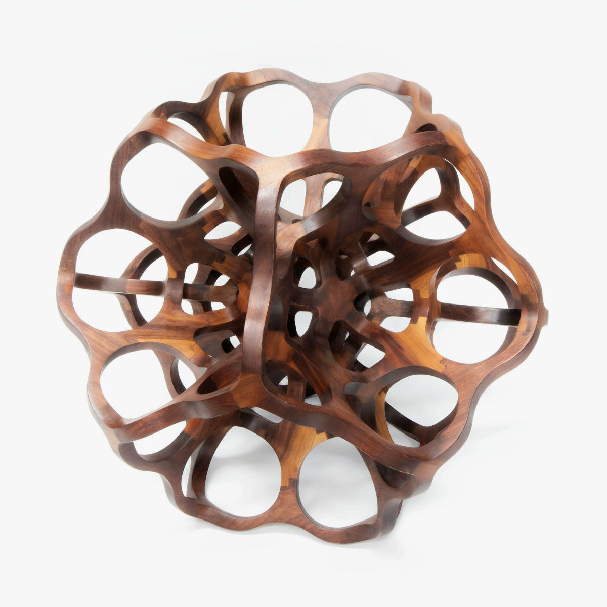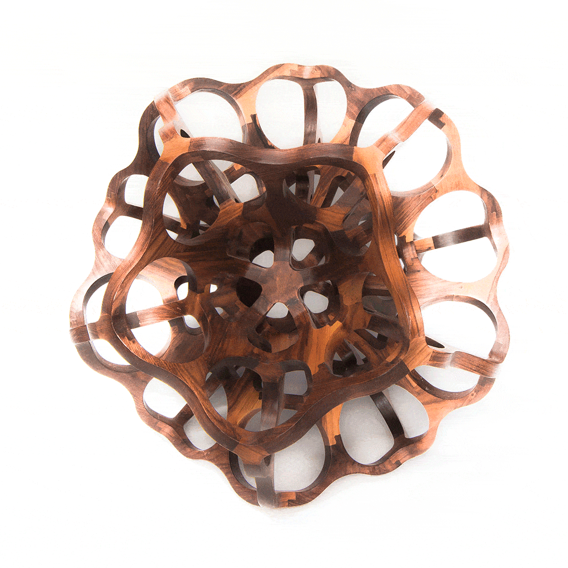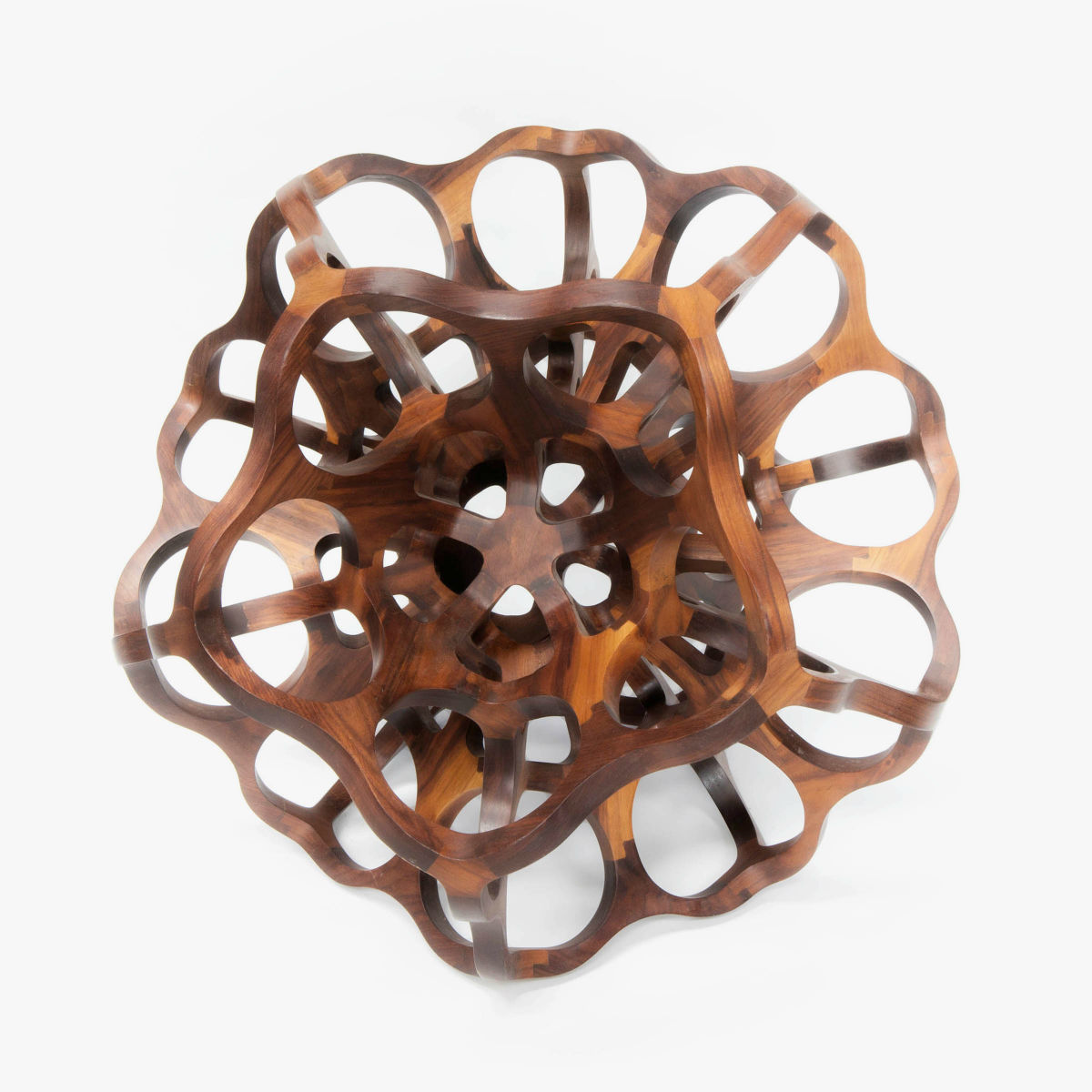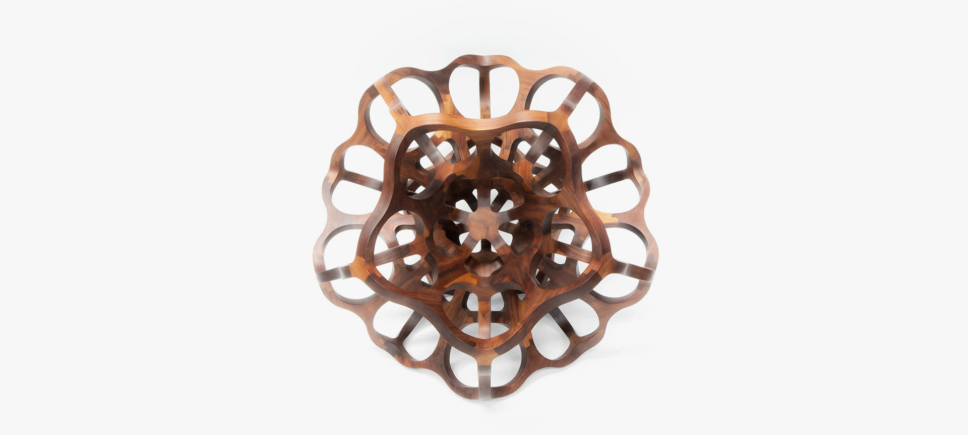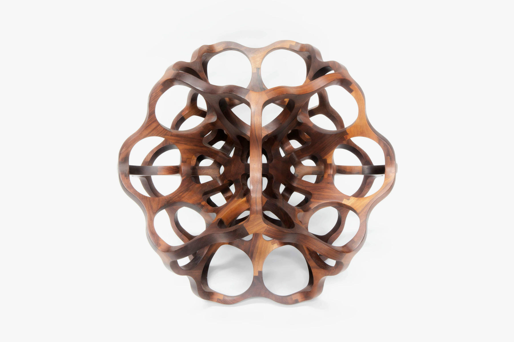 Introducing Nodus, a captivating sculptural design piece meticulously crafted from CNC-cut solid walnut pieces. Its intricate structure beautifully showcases the harmonious interplay between two platonic solids – the icosahedron and the dodecahedron. Every aspect of its assembly, including the meticulous polishing and the final touch of natural oil finish, is meticulously carried out by the artist’s skilled hands. Galatea is a testament to the artist’s manual craftsmanship and artistic vision.