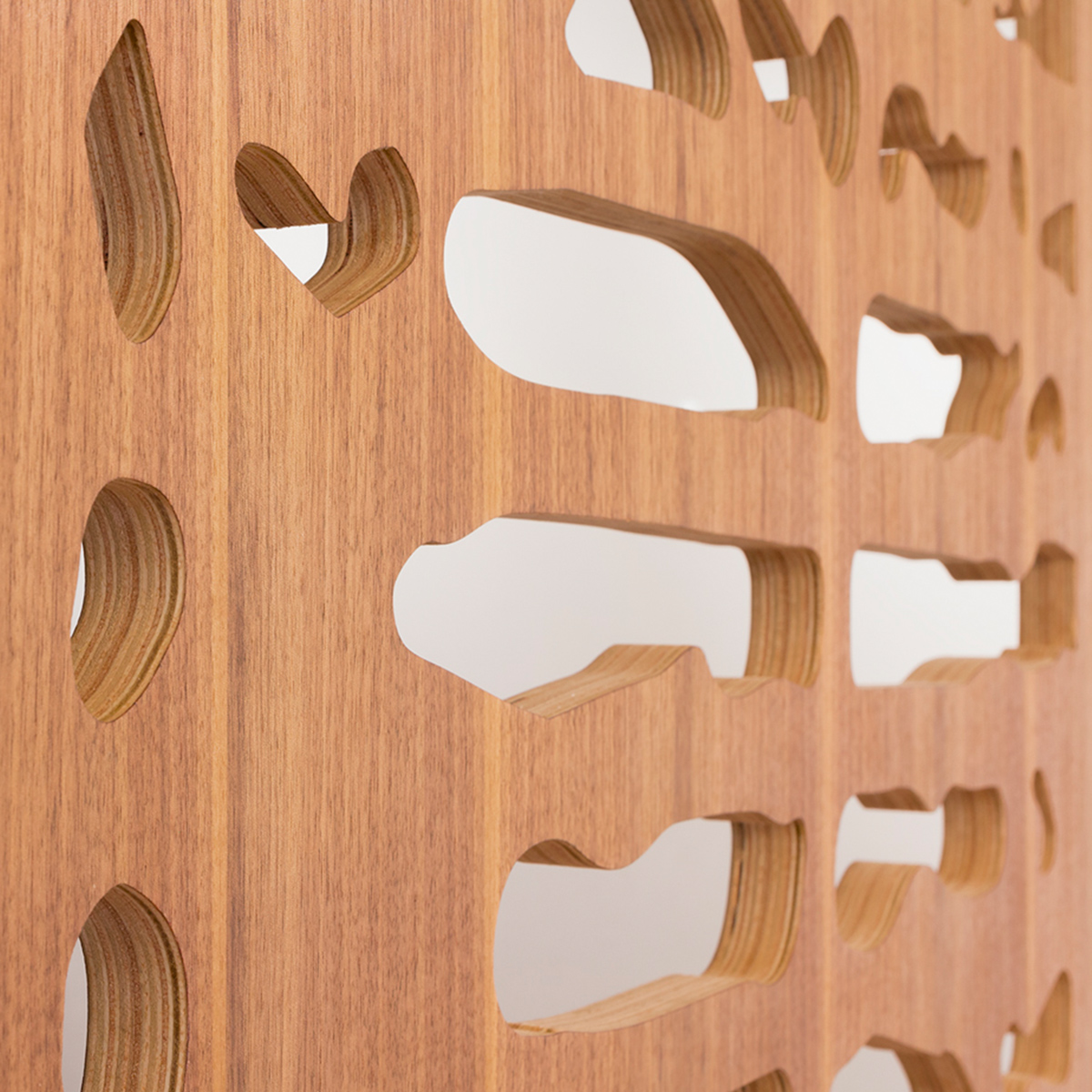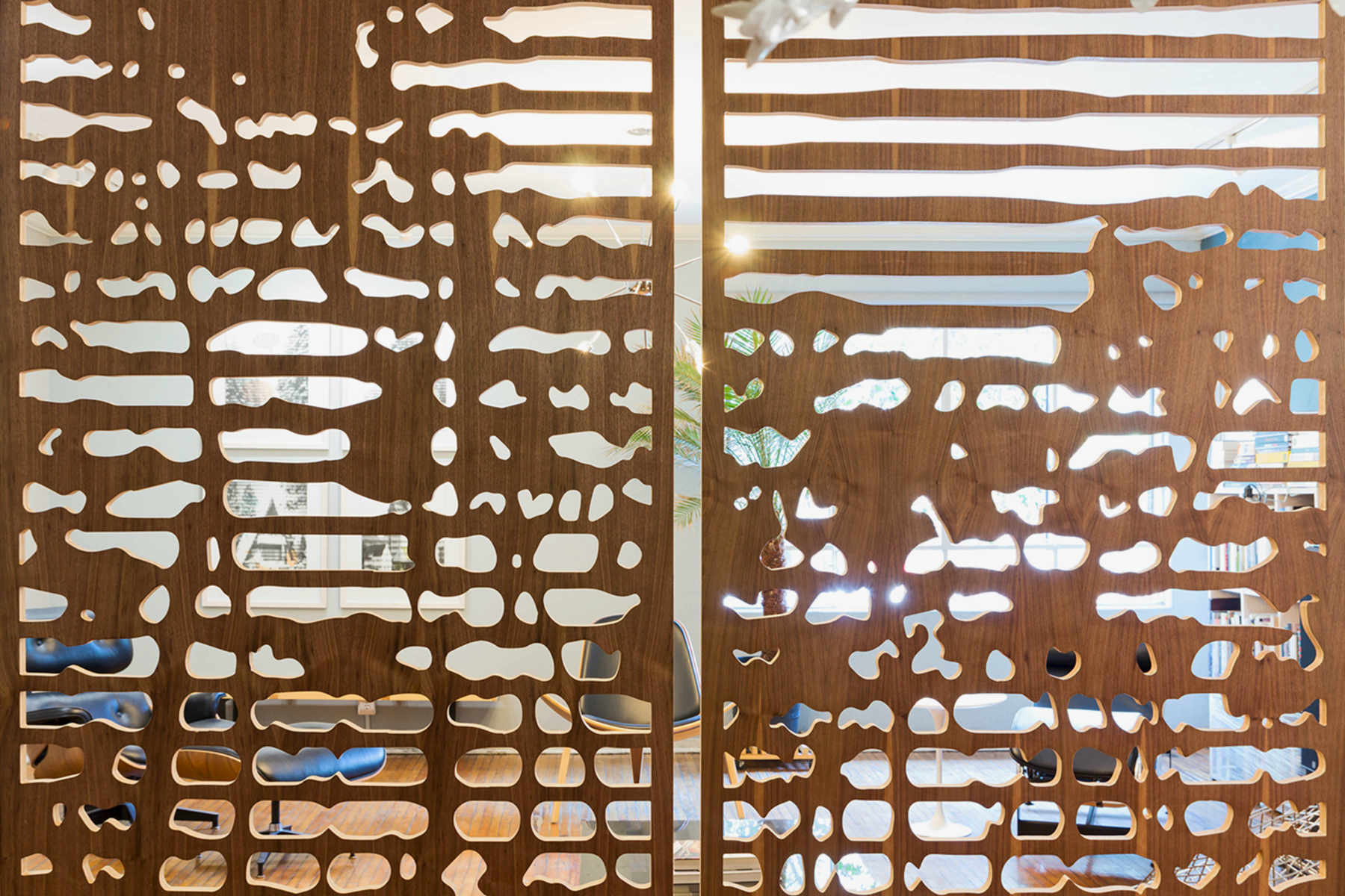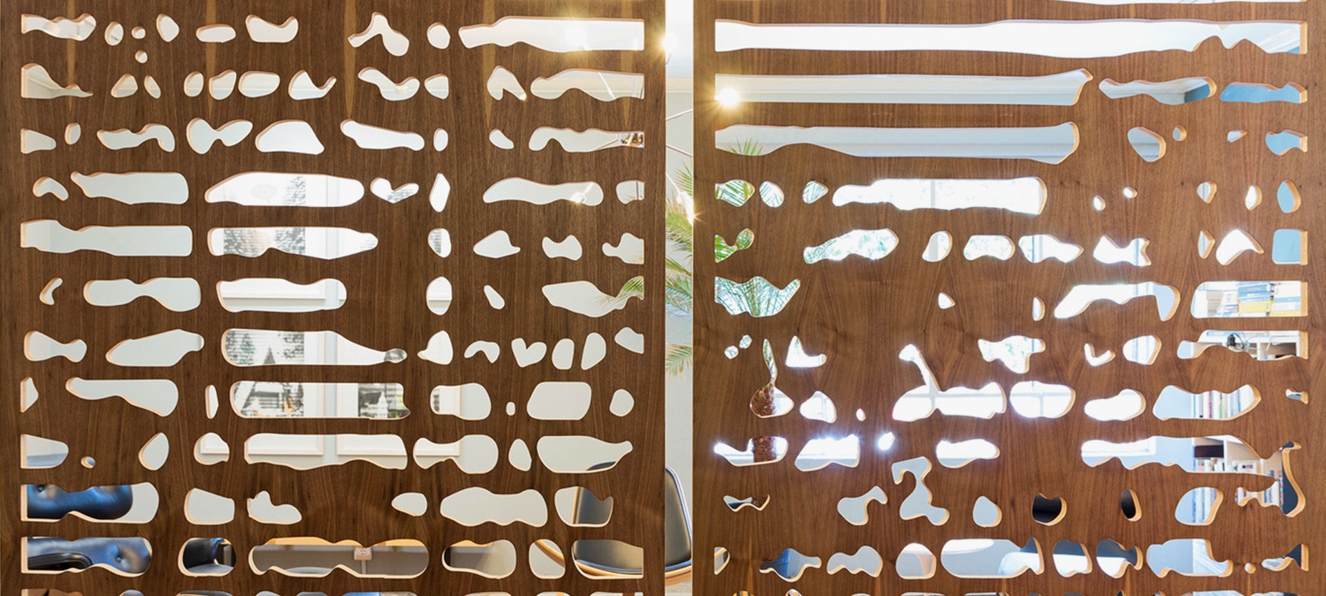 An elegant and unique artwork with a purpose: to divide in, the most subtle way, spaces based on the artworks of Cuban artist Raúl Cordero and in collaboration with him.