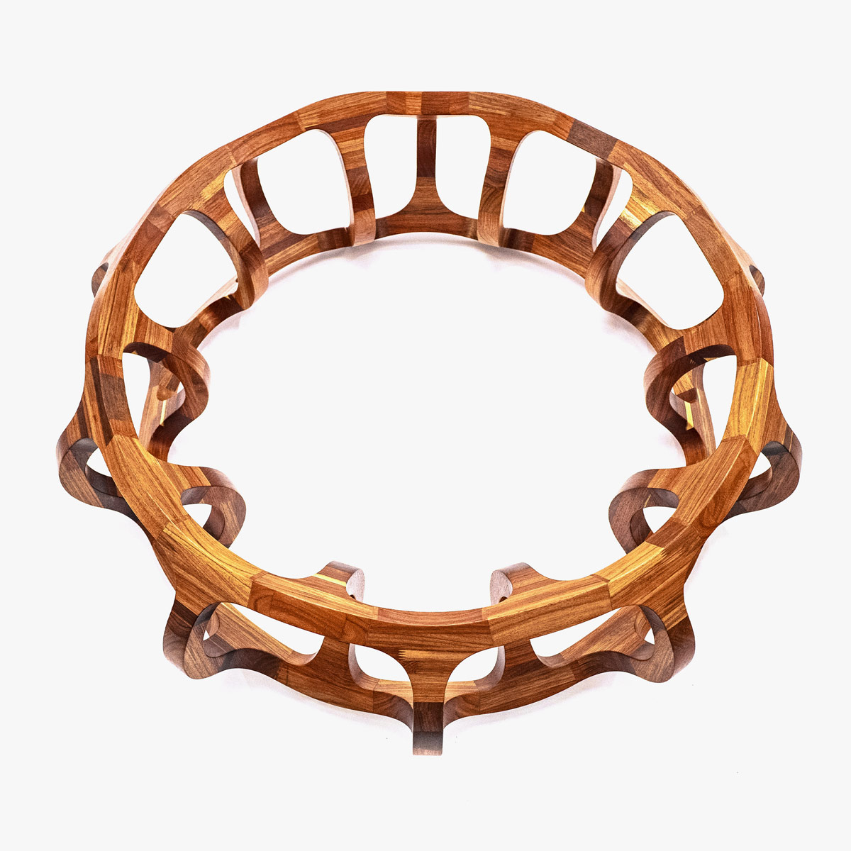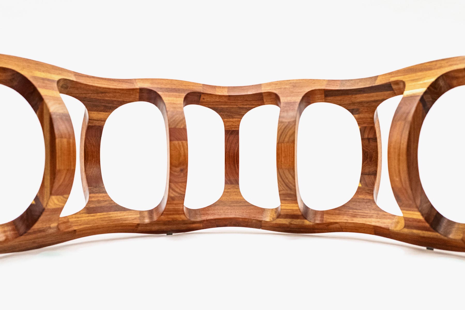 The creation of TORO G10 required meticulous investigation into various geometric figures and modular properties, culminating in an intricate yet elegantly simple structure that utilises only three types of solid wood modules. These modules are crafted from certified tzalam wood and are manually assembled, polished, and finished with natural oil to ensure both beauty and durability.